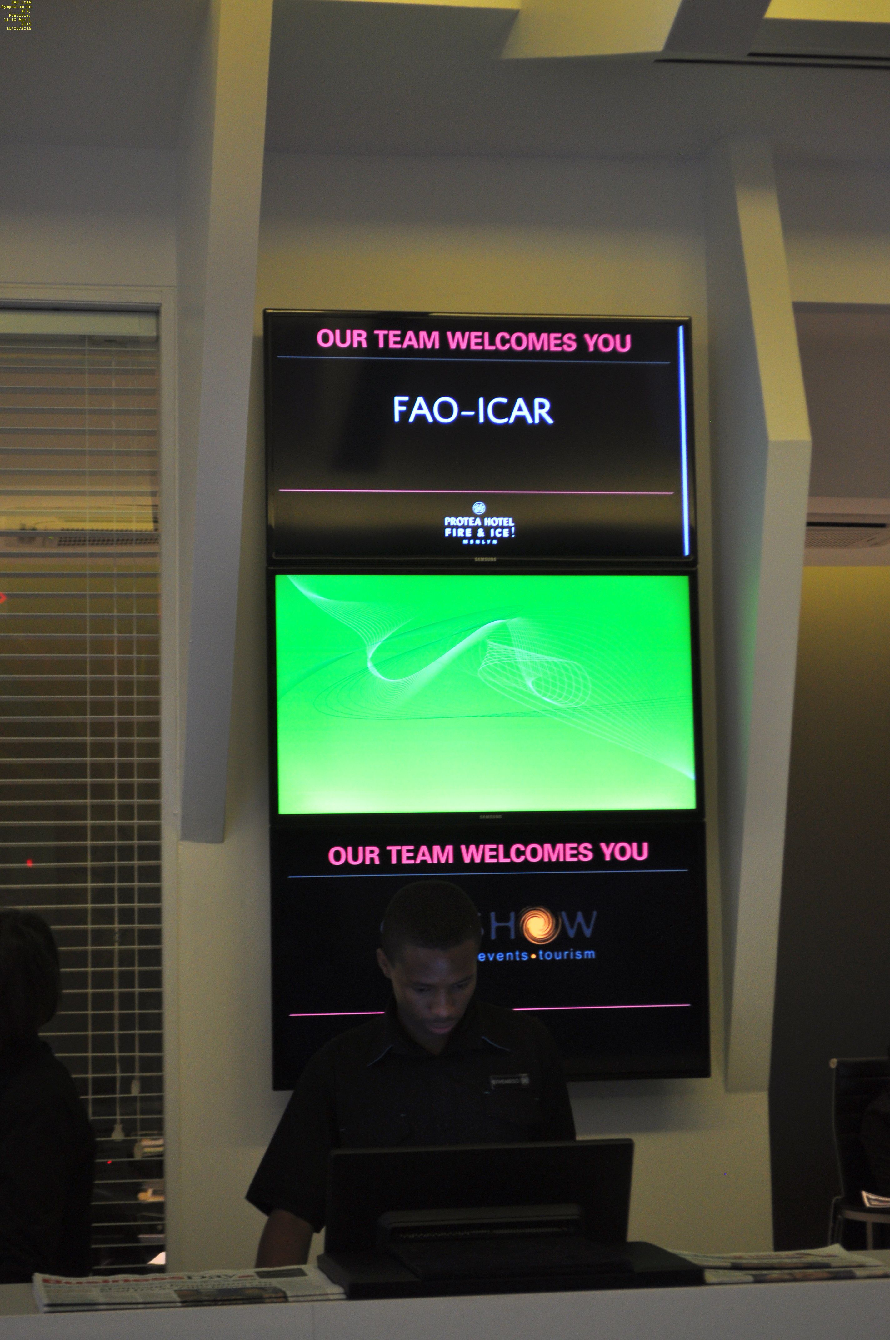 ICAR > Homepage > ICAR MEETINGS AND NEWS > Pretoria 2015 > Theatre presentations at the Pretoria Symposium > Pictures taken at the FAO-ICAR Symposium on AIR, Pretoria, 14-16 April 2015 > CSIR and Protea hotel locations