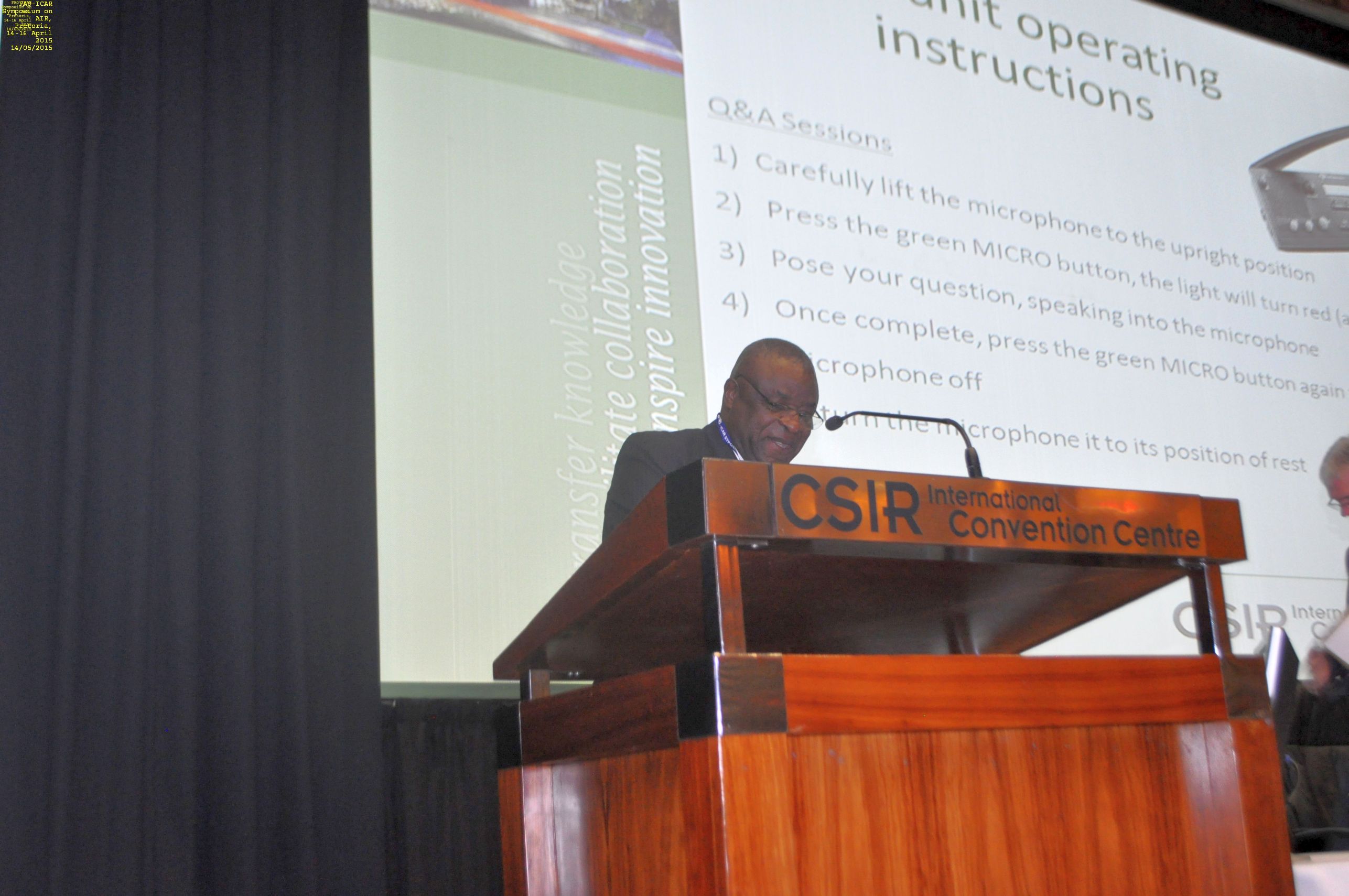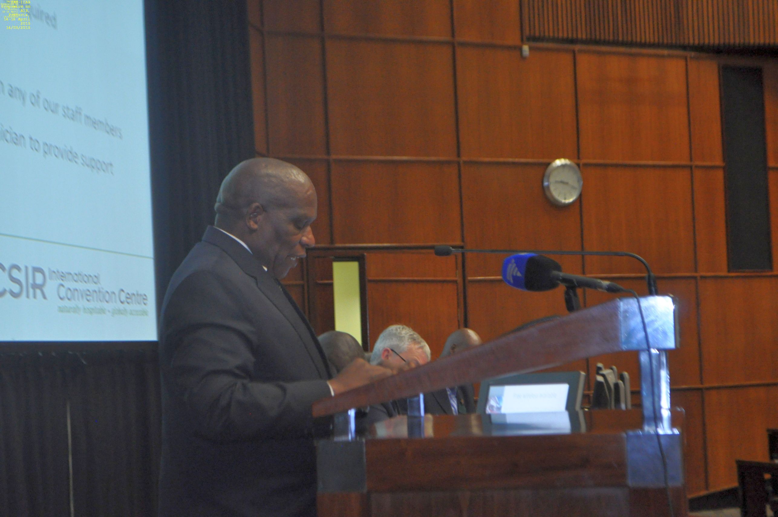 ICAR > Homepage > ICAR MEETINGS AND NEWS > Pretoria 2015 > Theatre presentations at the Pretoria Symposium > Pictures taken at the FAO-ICAR Symposium on AIR, Pretoria, 14-16 April 2015 > Speech of the Minister of Agriculture of South Africa the Hon. Mr. Senzeni Zokwana