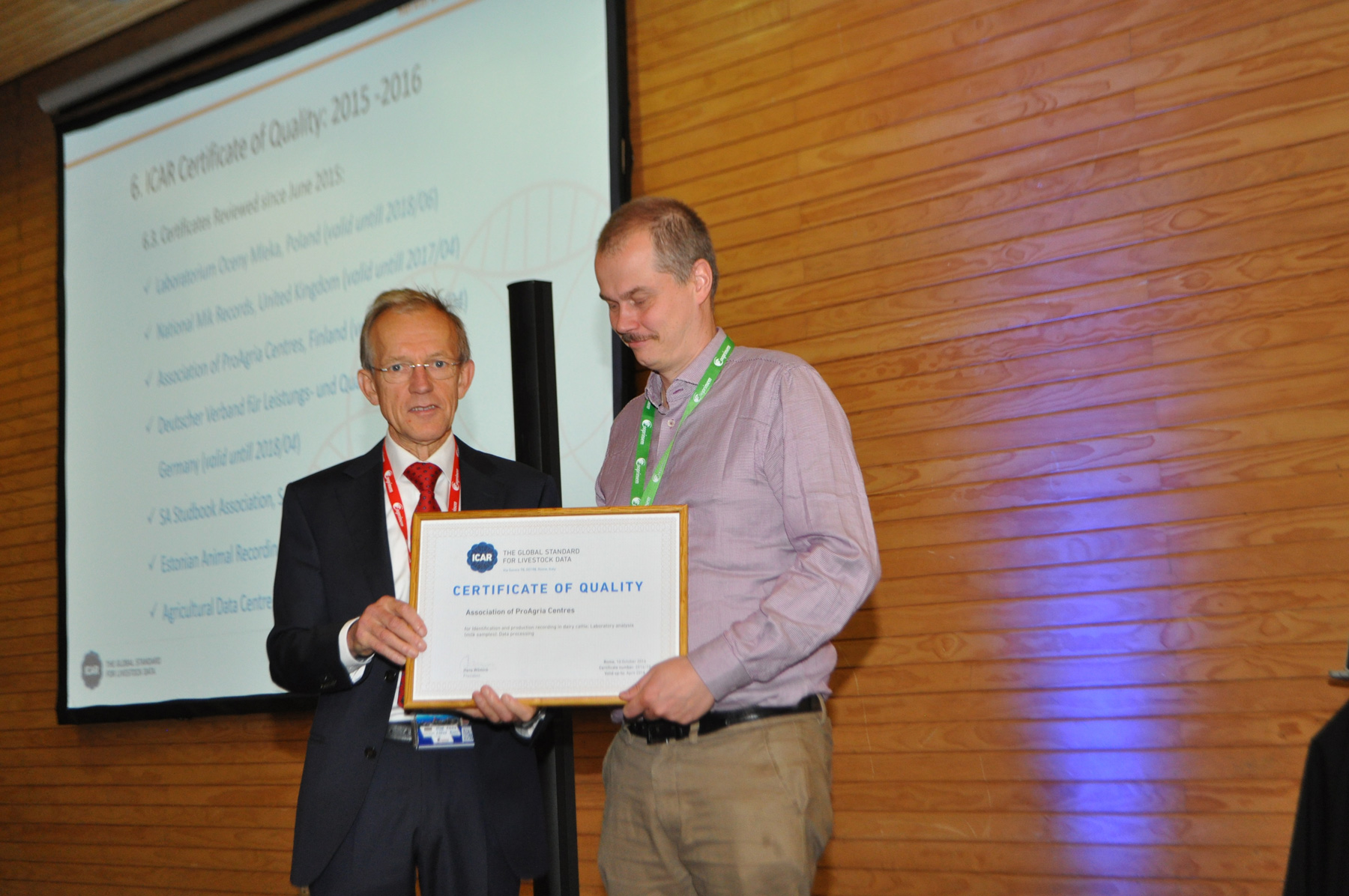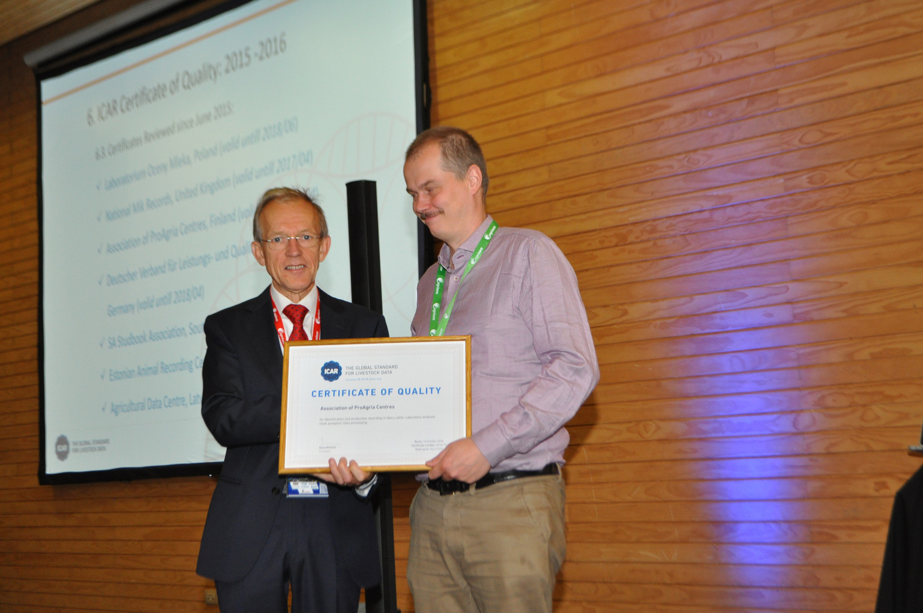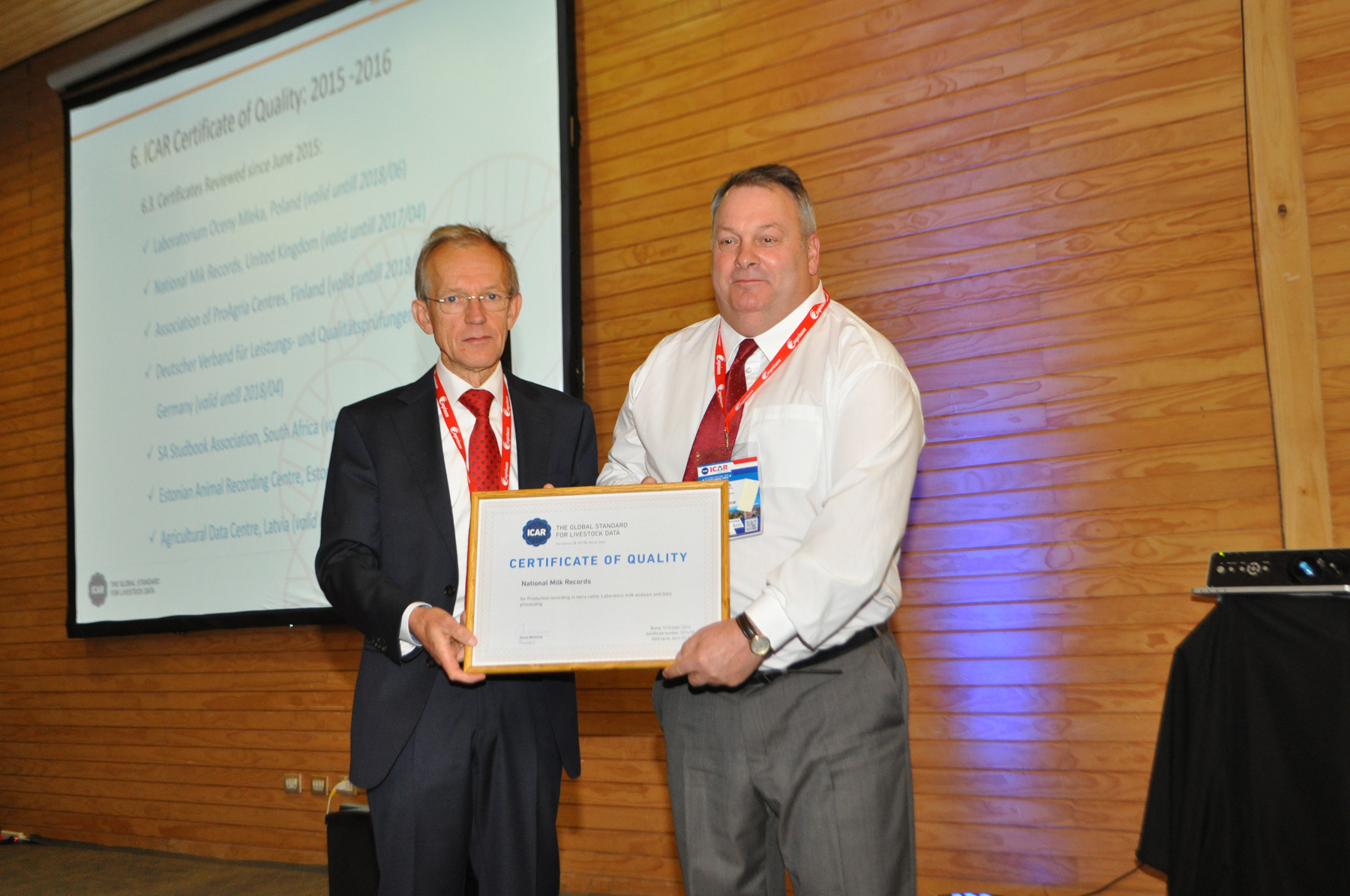 Puerto Varas: 26 October – The Certificate of Quality delivery Pictures taken on 26 October at the delivery of the Certificate of Quality during the General Asembly